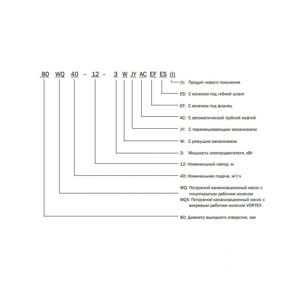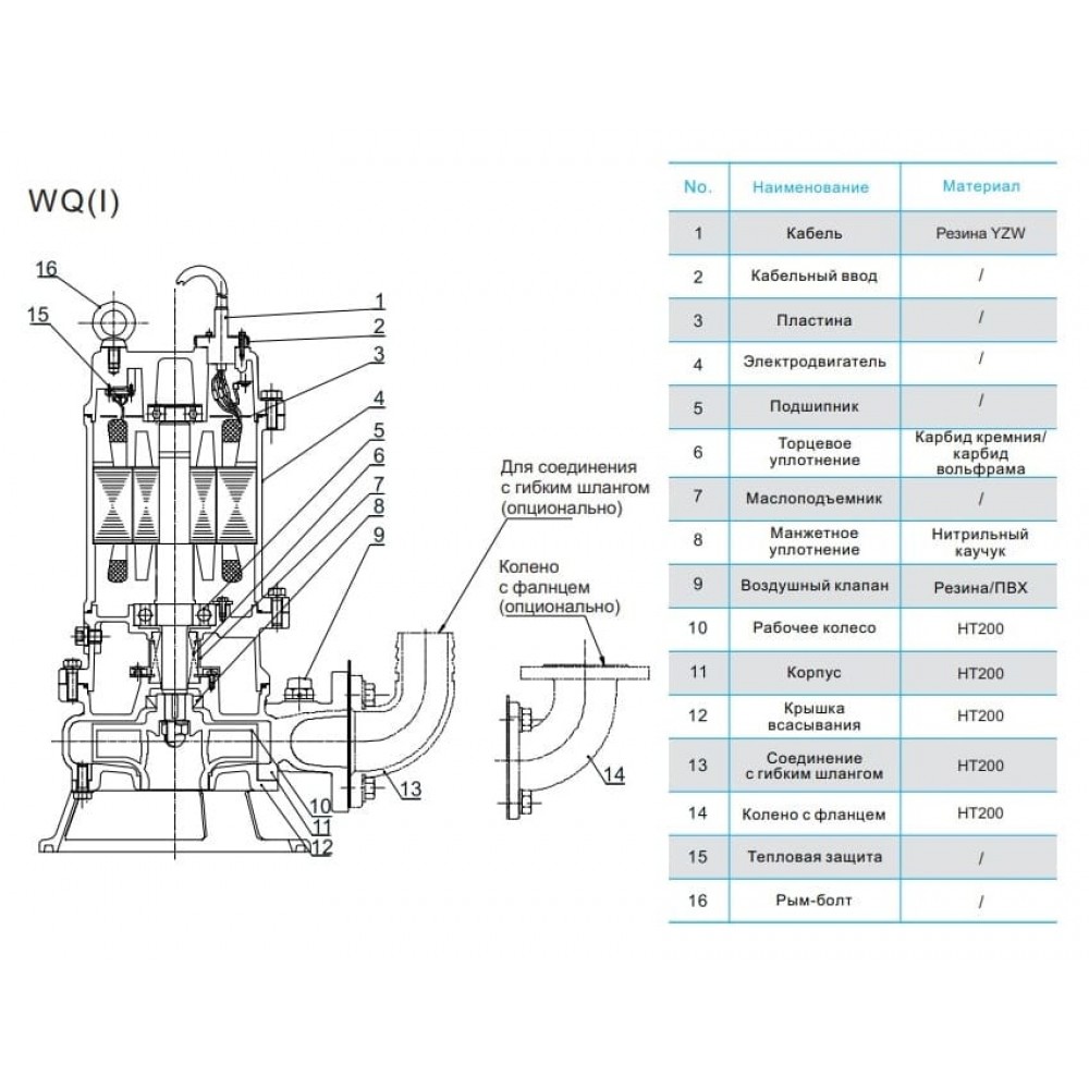 Описание и технические характеристики Насос канализационный CNP 100WQ100-15-7.5AC(I) 7,5кВт 3х380В чугунный с автоматической трубной муфтой DN 100 кабель 9м 40гр.