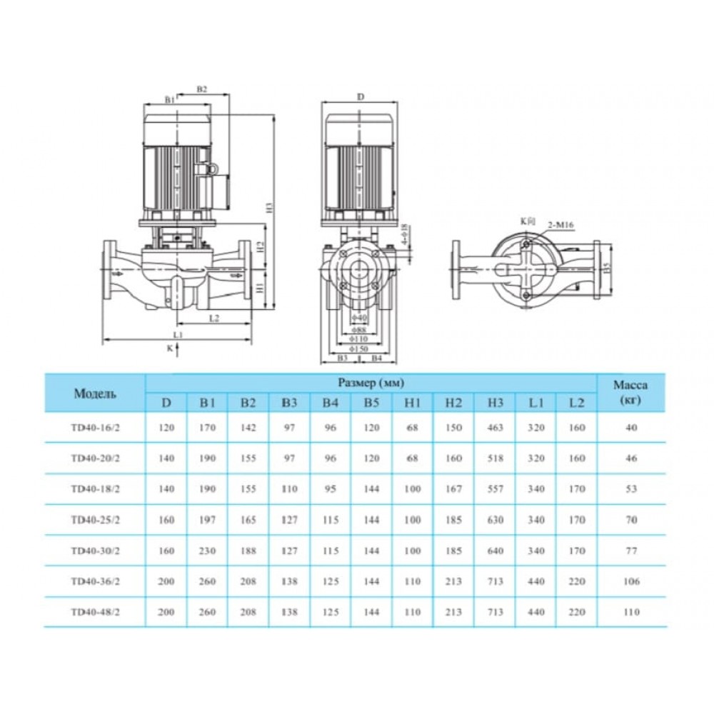 CNP TD 40-18/2 SWHCJ - одноступенчатый рядный циркуляционный центробежный вертикальный насос одностороннего всасывания с соосным размещением патрубков «in-line».